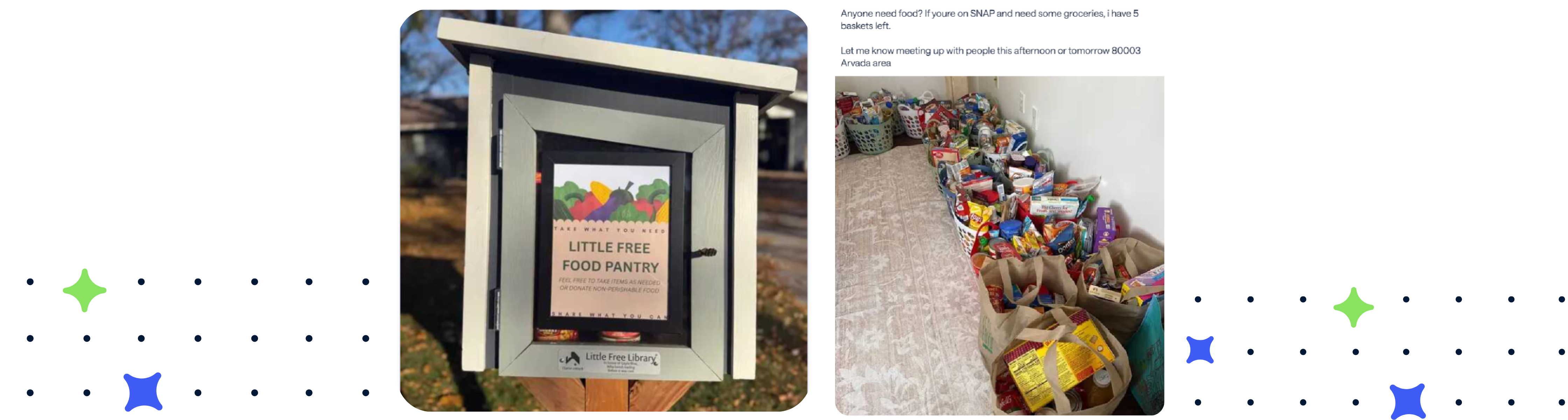 My newsfeed here in suburban Denver is full of people finding quiet, creative ways to help one another. The usual chatter on neighborhood Facebook and Nextdoor groups and listservs has evolved into something more – parents organizing food drop-offs at our after-school programs, neighbors swapping resources, and people simply asking, “Who needs something?” A neighbor a few blocks away posted that she bought extra groceries after a bulk shopping trip, offering to drop off extra milk, bread, and eggs to any family who is struggling but hesitant to ask for help. Concurrently, our school district, recognizing the immediate threat to student welfare, launched a major food drive specifically to support families whose children rely on free or reduced lunch — a population suddenly staring at empty refrigerators.